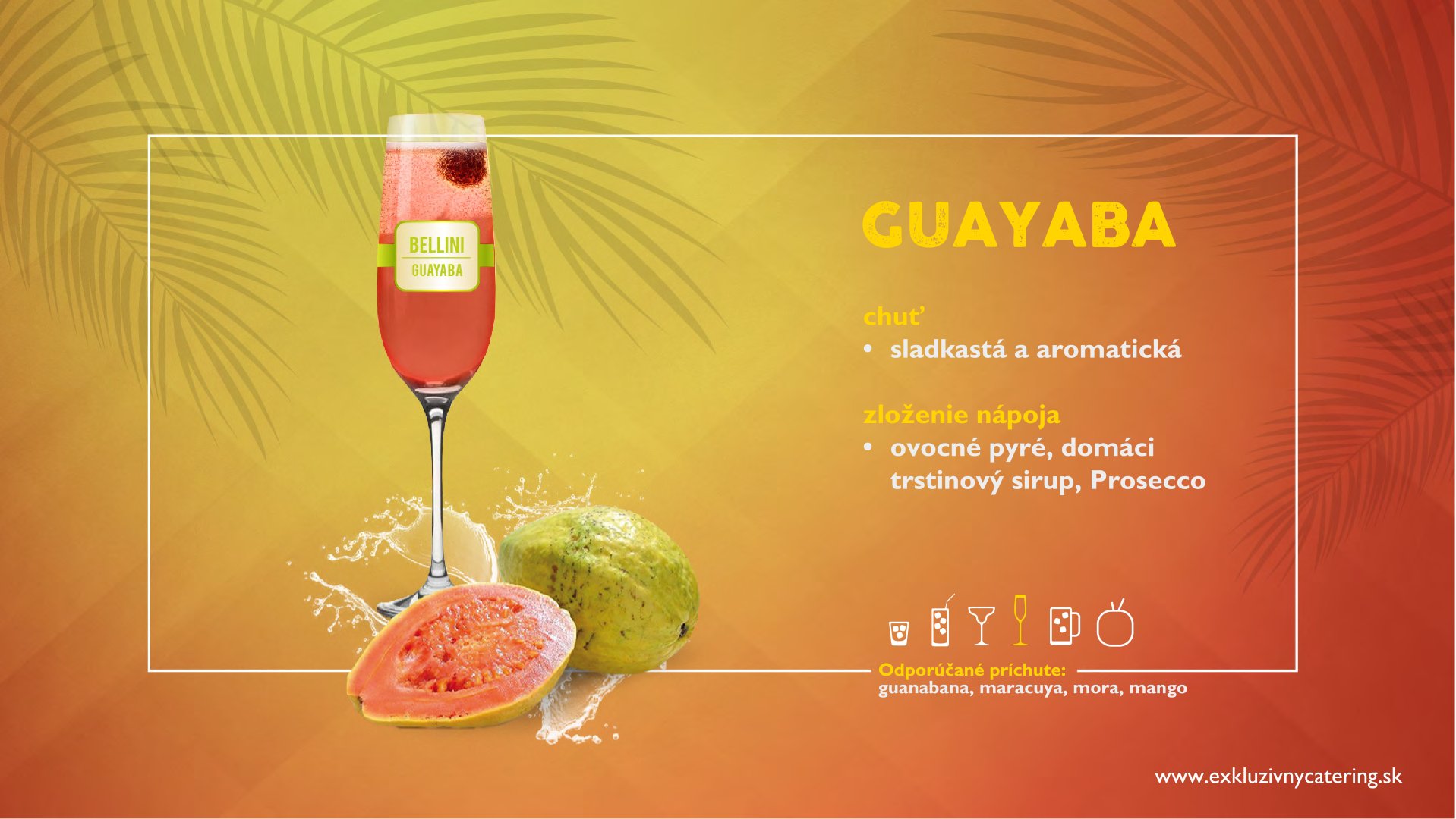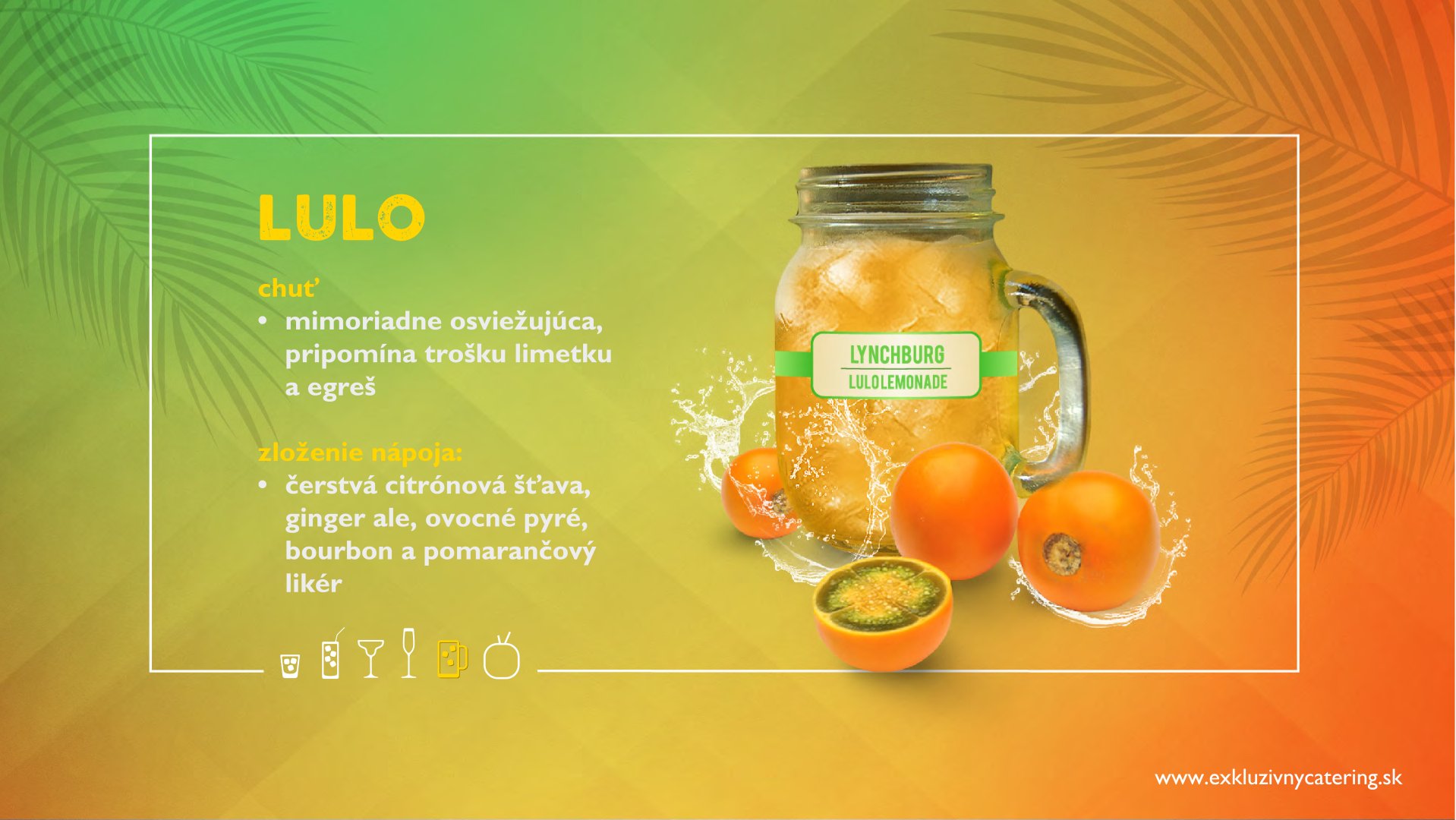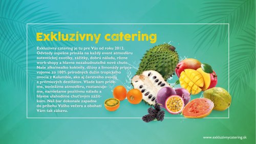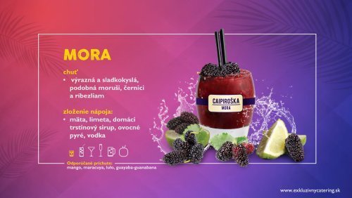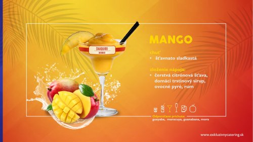 Naše alko/nealko kokteily, džúsy a limonády pripravujeme z najkvalitnejších ingrediencií zo 100% prírodných dužín tropického ovocia, ako aj čerstvého ovocia a prémiových destilátov. Väčšinu surovín kt.používame si pripravujeme v našej “kuchyni” (ovocné pyré, sirupy, ktoré si varíme, peny, atď.) Vyhýbame sa E-čkovým tovarom. Všade kam prídeme, osviežime atmosféru, roztancujeme, namiešame pozitívnu náladu a hlavne ulahodíme chuťovým zážitkom. Náš bar dokonale zapadne do príbehu Vášho večera a obohatí Vám zábavu s nezabudnuteľnou atmosférou.