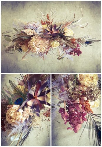 Realizujem svadobné výzdoby a svadobné kytice z rezaných kvetov. Avšak ponúkam aj možnosť zrealizovať to zo sušených a stabilizovaných kvetov. Je to šetrnejší a udržateľnejší prístup k prírode (táto verzia je aj o možnosti zapožičania ).
