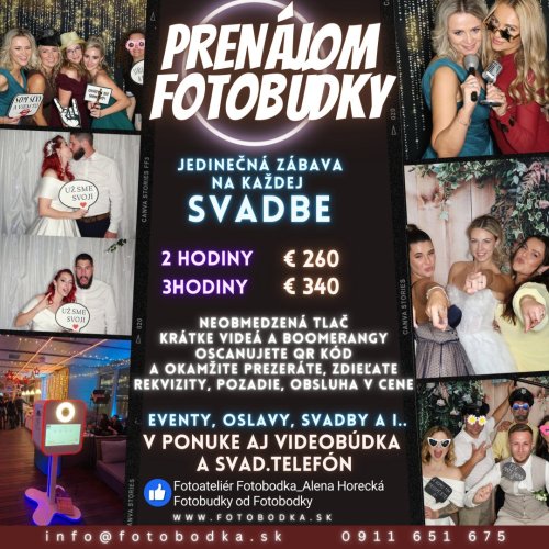 3. Fotobúdku zriadime a nainštalujeme i s fotopozadím, k dispozícii budú i vtipné fotorekvizity a profi zabávajúca obsluha:)