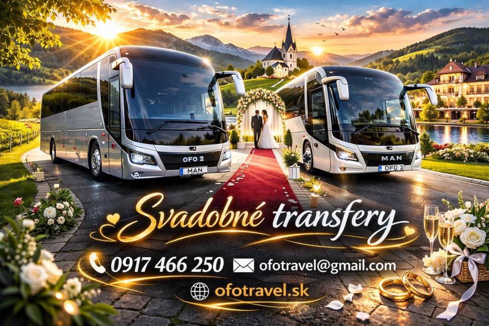 Váš svadobný deň by mal byť o radosti a nezabudnuteľných chvíľach – nie o starostiach s dopravou. Postaráme sa o bezpečný a pohodlný presun všetkých hostí, či už ide o mikrobus pre najbližšiu rodinu alebo priestranný autobus pre väčšiu skupinu.
