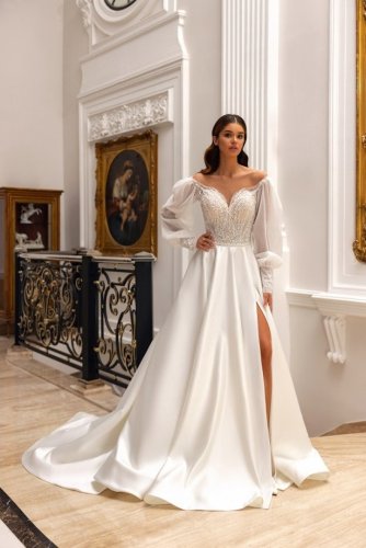 V našom salóne nájdete ponuku svadobných šiat priamo na kúpu, prenájom alebo Vám ich radi ušijeme na mieru.