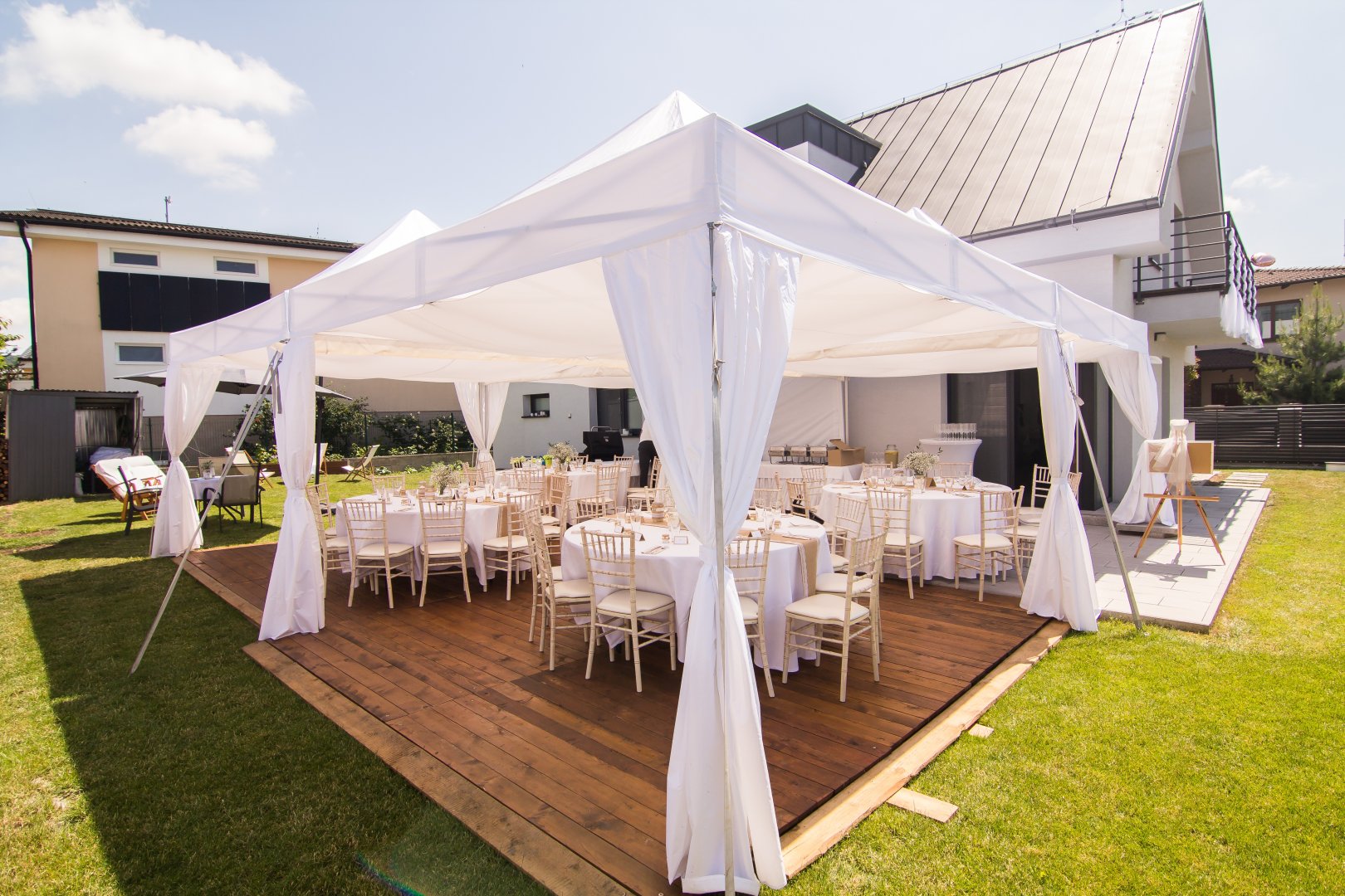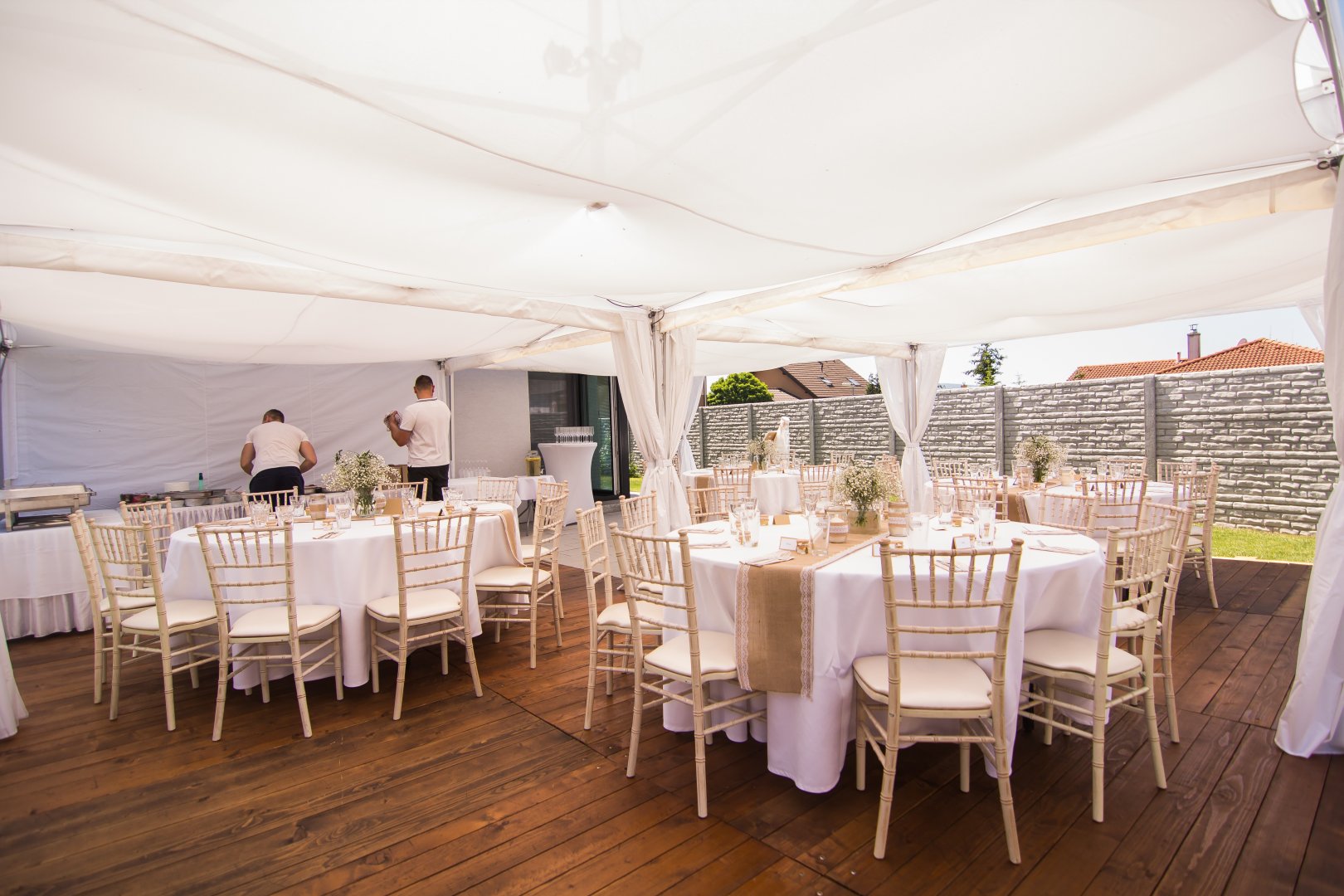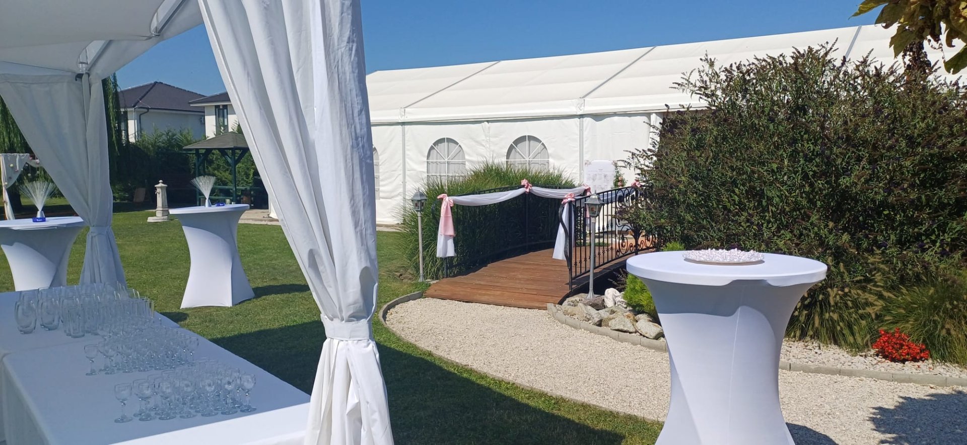 RACZIO party service sa špecializuje na prenájom stanov a kompletného vybavenia pre svadby a rôzne spoločenské podujatia. V našej ponuke nájdete svadobné stany, stoly, stoličky, inventár a ďalšie praktické doplnky, vďaka ktorým vieme zabezpečiť funkčné aj estetické riešenie na jednom mieste. Naša práca stojí na dlhoročných skúsenostiach, spoľahlivosti, precíznosti a individuálnom prístupe ku každému klientovi.