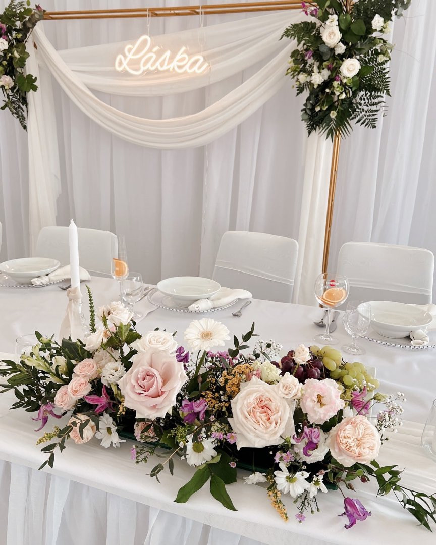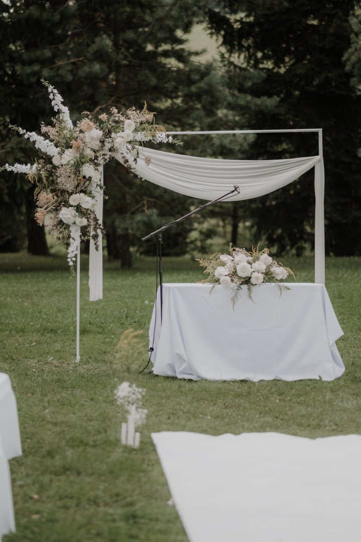 -Široký výber dekorácií pre obradné miesto, ako sú svadobné brány, závesy, svetlá, kvetinová ulička a ďalšie.