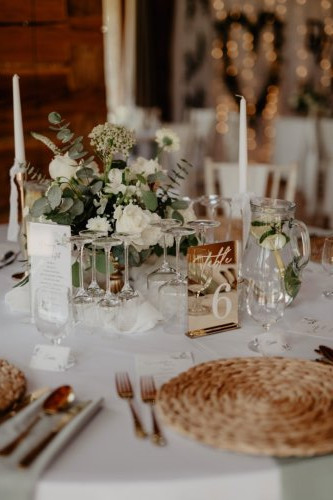 - Personalizované detaily, ako sú iniciály, nápisy alebo symboly, aby ste svojim hostom pripomenuli význam tohto dňa.
