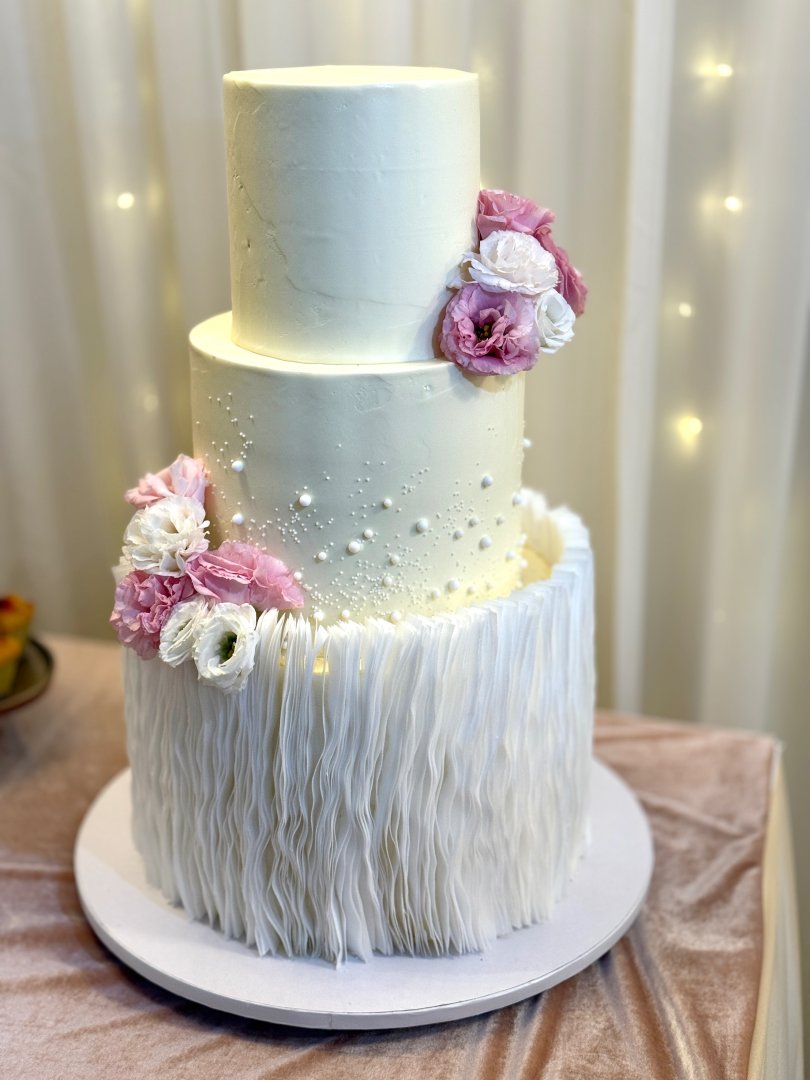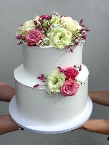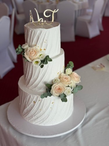 Každá svadobná torta z Mňamky je jedinečný originál, pripravený s citom pre detail, poctivými surovinami a dokonalou rovnováhou chutí. Tvoríme torty, ktoré ladia so štýlom vašej svadby – od klasickej elegancie po moderný minimalizmus.