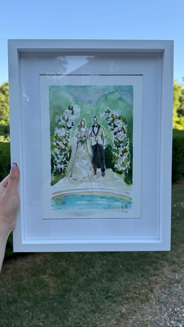 - Možné je aj maľovanie počas celého obradu a večerných osláv, pri ktorom budú zachytené najdôležitejšie momenty svadby nielen fotoaparátom fotografa, ale aj okom maliara.
