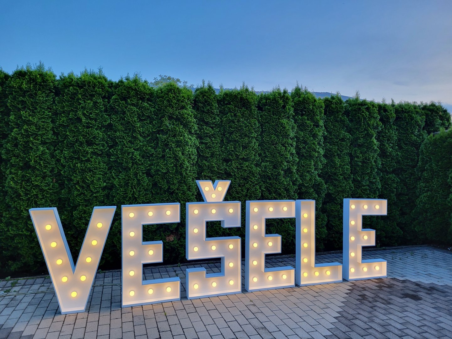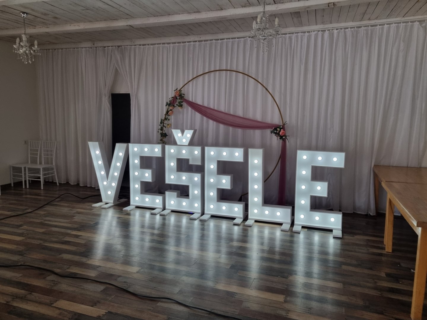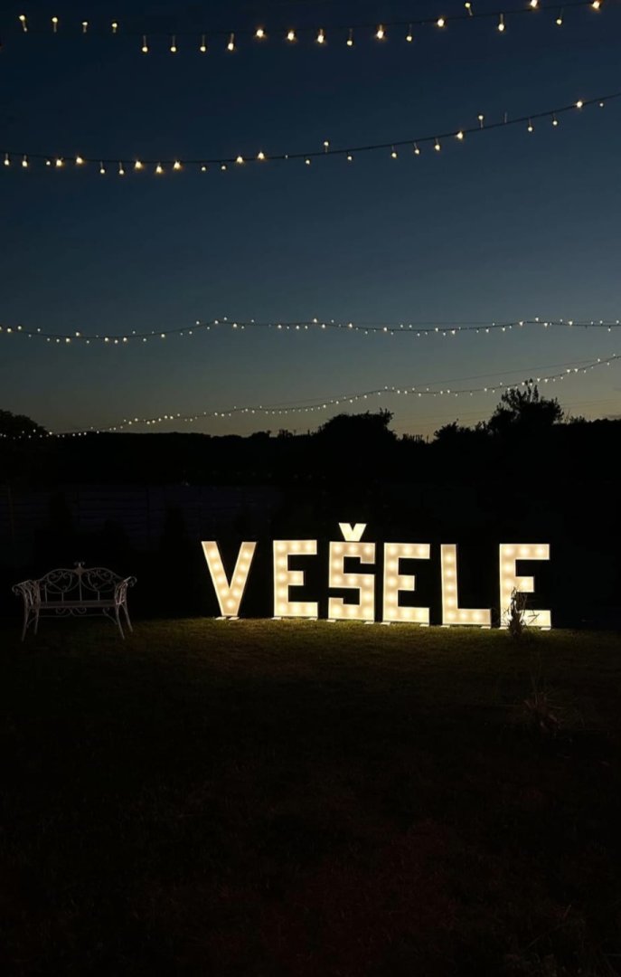 Hľadáte detail, ktorý dodá vašej udalosti jedinečnú atmosféru? Pod hviezdami, kde sa sny stretávajú s realitou, zažiari nápis VEŠELE ako svetelný odkaz lásky, radosti a nezabudnuteľných chvíľ... 🩷