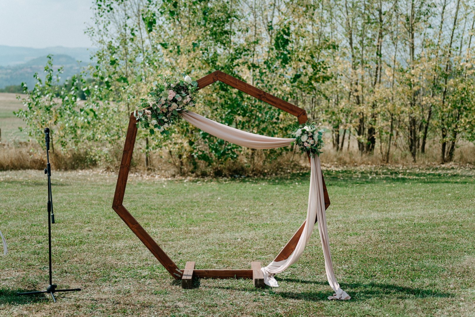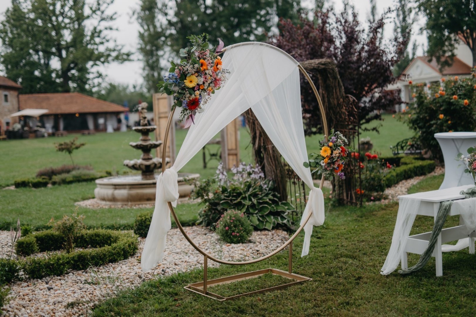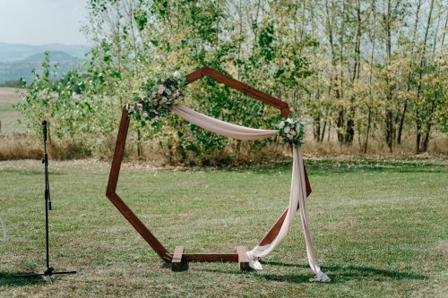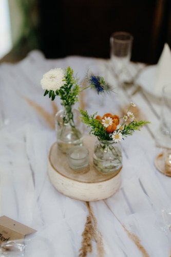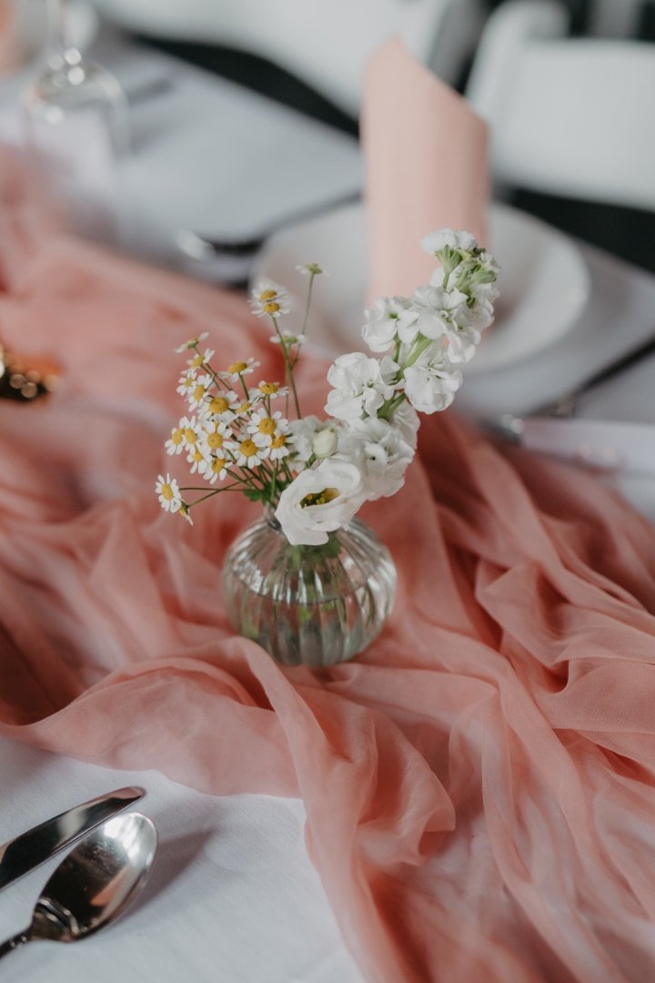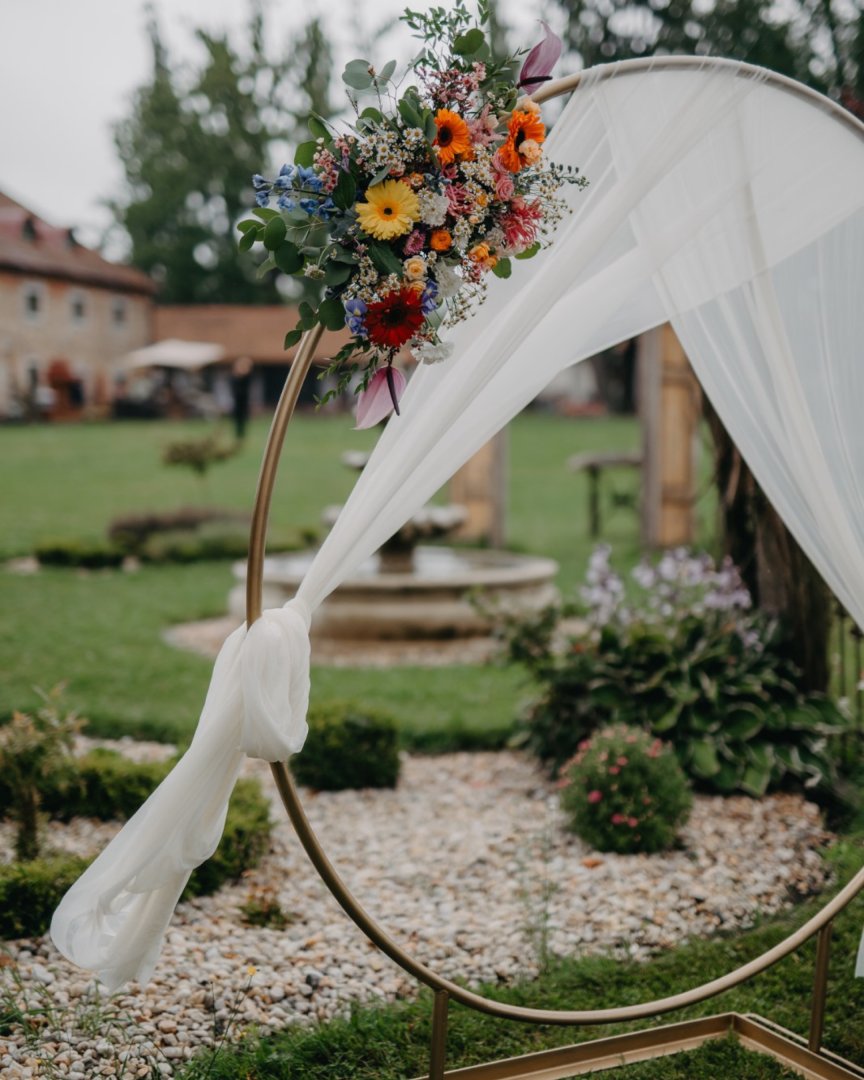 V den svatby zajišťuji instalaci na místě – od svatební brány přes výzdobu stolů až po detaily pro fotografa nebo dekor dortu. Záleží mi na tom, aby vše bylo doladěné a fungovalo jako celek.