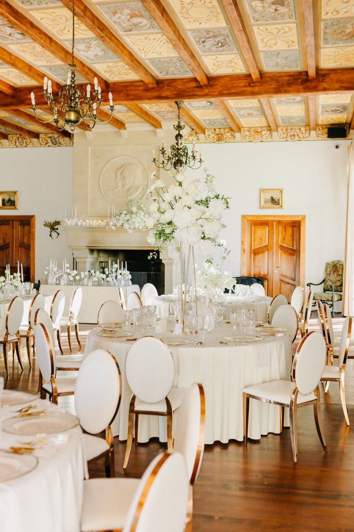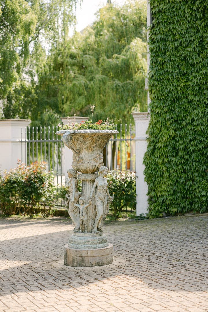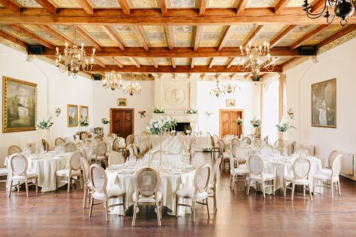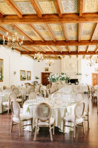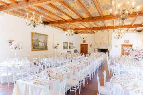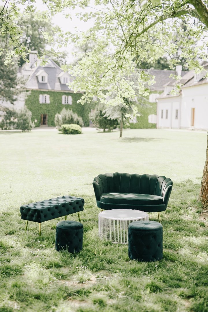 Sál pro hostinu navazuje na prostornou terasu, která plynule přechází do zámeckého parku, který svými vzrostlými stromy, zelenými trávníky a romantickými zákoutími vytváří ideální kulisy pro focení, chvíle klidu i nezapomenutelné obřady pod širým nebem.